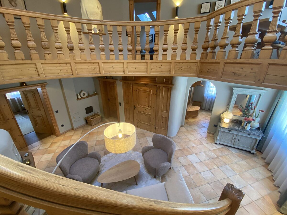 Up the winding staircase, there is a snug, with space for cards and games and views of the mountains. There’s a master bedroom and second bedroom, each with walk-in wardrobe as well as a shared bathroom with a sauna and walk-in shower. The final bedroom also has a shower room, and all three bedrooms have their own access to balconies so you can enjoy the mountain air and marvellous views as soon as you wake up each morning.